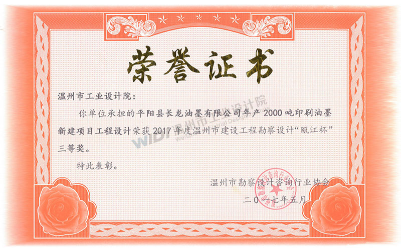 平陽縣長龍油墨有限公司年產(chǎn)2000噸印刷油墨新建項目工程設(shè)計 甌江杯三等獎