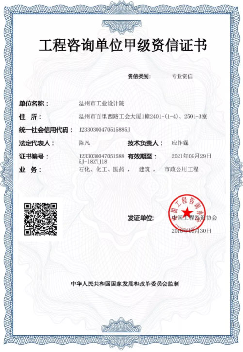 溫州市工業(yè)設(shè)計(jì)院獲首批工程咨詢單位甲級(jí)資信資格