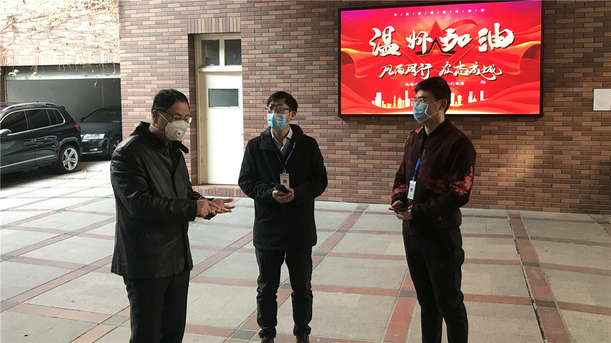 金國平一行在大樓門口主動接受體溫監(jiān)測,檢查大樓的”六個一”執(zhí)行情況,針對性地指出在疫情期間要借助信息化技術(shù)改進出入口的登記手段,在提高效率的同時也有效地阻斷交叉感染。接著,檢查組一行深入大樓每個樓層詳細了解辦公場所清潔消殺狀況、消防安全落實情況等,并重點強調(diào)了辦公場所的“四個加強”,加強出入人員管控、通風(fēng)、保潔、消毒等工作。