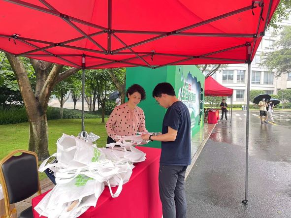 伴隨著蒙蒙細雨的早晨,在溫州銀泰百貨中心廣場活動現(xiàn)場各單位通過展板、橫幅、宣傳冊、掃碼答題等方式向廣大居民群眾傳播節(jié)能降碳和綠色發(fā)展理念,倡導(dǎo)綠色低碳生活方式,引導(dǎo)廣大市民養(yǎng)成綠色低碳生活方式。工業(yè)院組織10名志愿者在場向市民普及節(jié)能小常識,幫助市民解答節(jié)能方面的日常問題。上午11點,工業(yè)院一部分志愿者又馬不停蹄的趕往位于溫州市人民政府大院內(nèi)的節(jié)能宣傳活動場,在機關(guān)大院內(nèi)又掀起一股節(jié)能宣傳的熱潮。