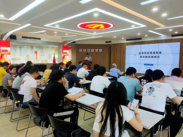 黨課內(nèi)容主要圍繞項目管理在科學層面和哲學層面的理解,新發(fā)展理念的內(nèi)容,以及如何運用項目管理思想來貫徹新發(fā)展理念來闡述的。吳家強指出項目科學層面包括項目的相關概念、組織影響、項目生命周期、項目管理過程和知識領域,哲學層面是從項目管理思想延伸至如何構建企業(yè)的管理和發(fā)展。要從戰(zhàn)略、運營、人力資源的管理上,以及企業(yè)文化、數(shù)字化建設上做好工作去推動企業(yè)的發(fā)展。有效的項目管理思想能提升企業(yè)的管理效率,因此要運用好項目管理思想,以新發(fā)展理念引領企業(yè)的高質量發(fā)展。